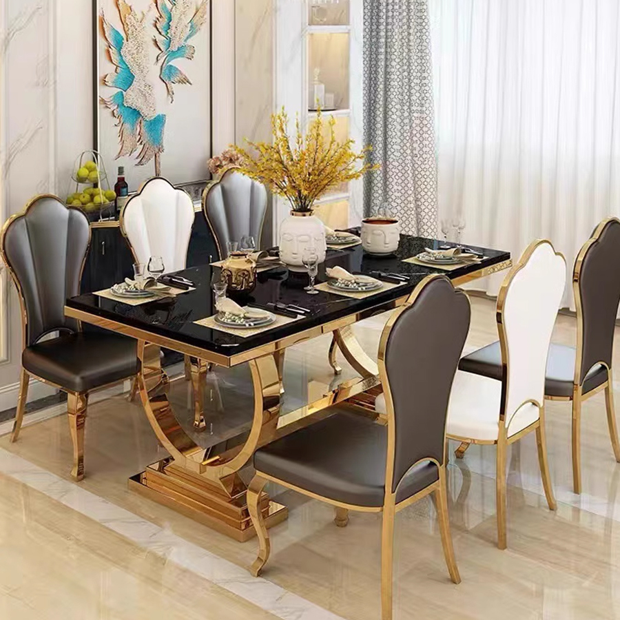 Bàn Ăn Double Q - Sự Hòa Quyện Giữa Nét Tinh Tế và Chất Lượng Với Chân Vàng và Mặt Đá Cẩm Thạch