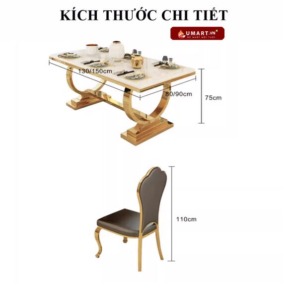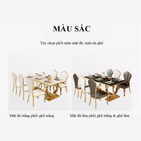 - Dễ Dàng Phối Hợp Trang Trí: Bàn ăn Double Q với chân vàng và mặt đá cẩm thạch dễ dàng phối hợp với nhiều phong cách trang trí nội thất khác nhau, từ hiện đại đến cổ điển, làm tôn lên vẻ đẹp của không gian ăn.