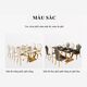 - Chân Bàn Mạ PVD Màu Vàng: Thiết kế chân bàn độc đáo với lớp mạ PVD màu vàng, tạo điểm nhấn sang trọng và quý phái. Chất liệu mạ PVD không chỉ giữ được màu sắc lâu dài mà còn chống trầy xước, tăng độ bền cho sản phẩm.