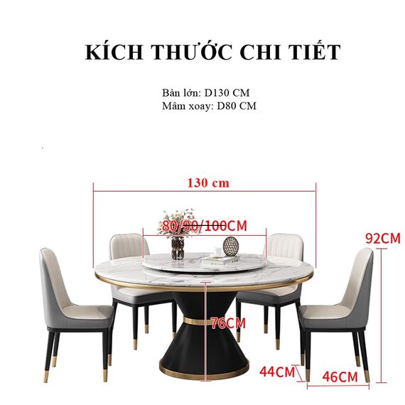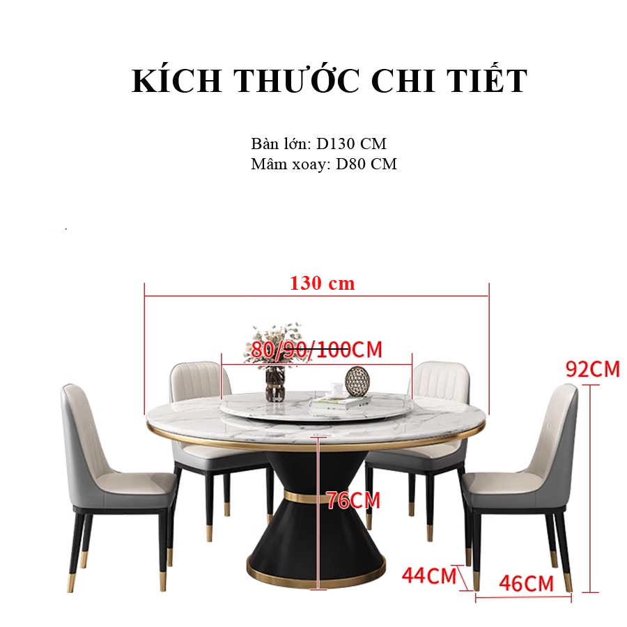 Đường kính mâm to 130cm đường kính mâm xoay 80cm mặt đá ceramic bóng chân sắt sơn tĩnh điện nhập khẩu nguyên chiếc