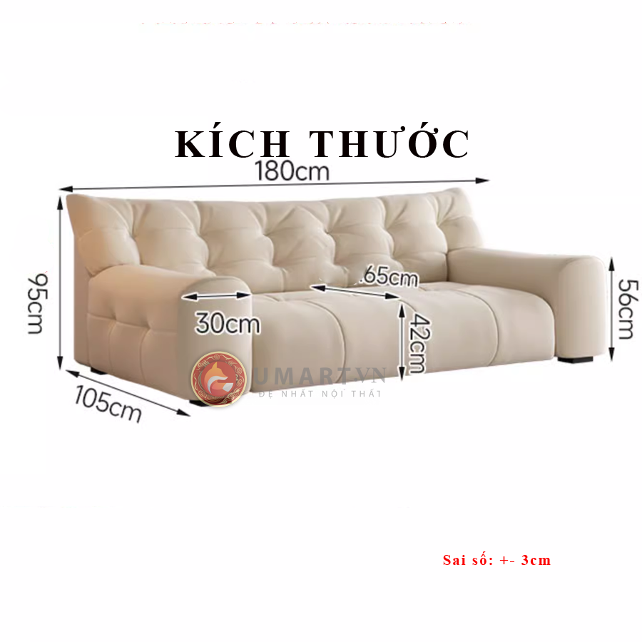 - Chất liệu bên ngoài: Bề mặt sofa bọc với vải nhung em bé (baby velvet) cao cấp, siêu mềm mại, thoáng khí và thân thiện với da.
