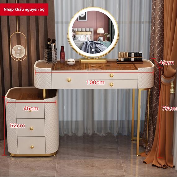 Tên sản phẩm: Bàn trang điểm, bàn phấn nhập khẩu đủ bộ có ghế và gương led cảm biến