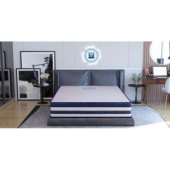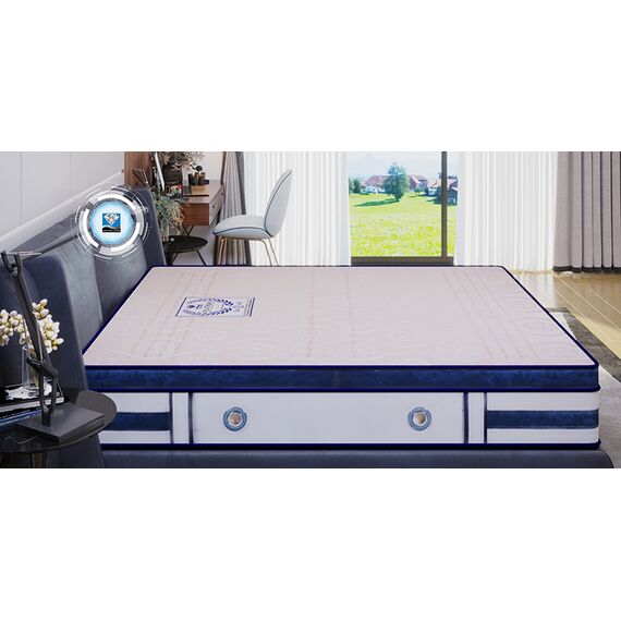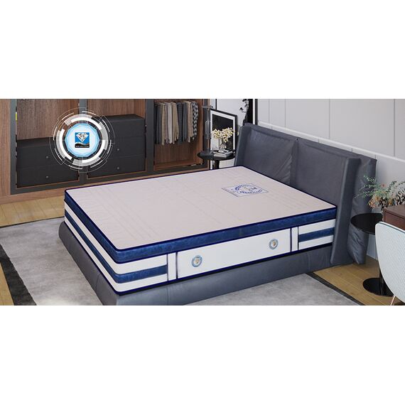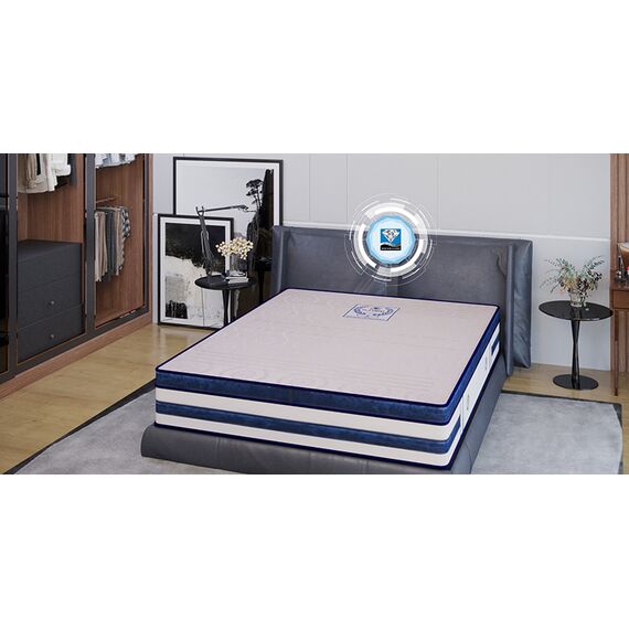 • Nguyên Liệu Chất Lượng Cao: Sử dụng lớp nguyên liệu thép đạt tiêu chuẩn chất lượng Châu Âu và lớp lót bề mặt cao su thiên nhiên, mang lại trải nghiệm ngủ hoàn hảo nhất.