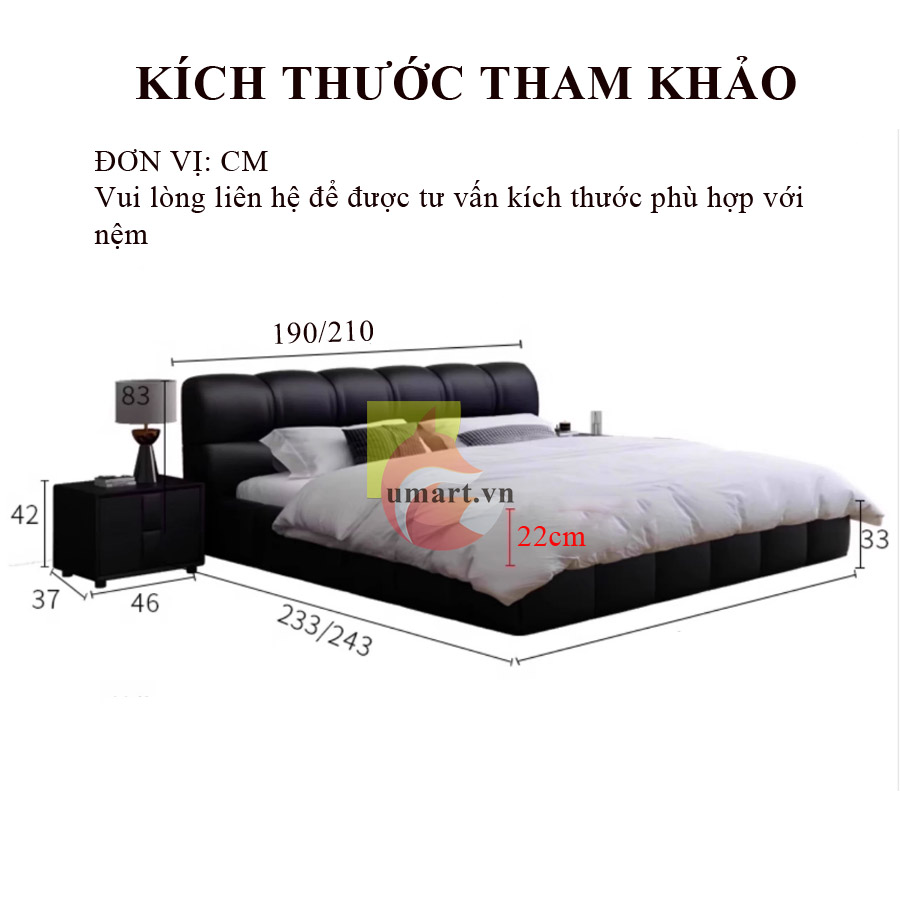 Thiết kế hiện đại – Ấn tượng & độc nhất: Kiểu dáng “bánh mì” bo tròn mềm mại, an toàn & sang trọng. Đầu giường & viền bọc da tạo cảm giác êm ái, thư giãn tối đa. Màu sắc đa dạng – Dễ dàng phối hợp với mọi không gian nội thất.