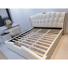 - Đầu Giường Bọc Da Thủ Công Tinh Xảo: Phần đầu giường được bọc da cao cấp, với các múi 3D được tạo hình thủ công tỉ mỉ. Đây không chỉ là điểm nhấn thị giác mà còn mang lại cảm giác êm ái, thư thái khi tựa lưng.