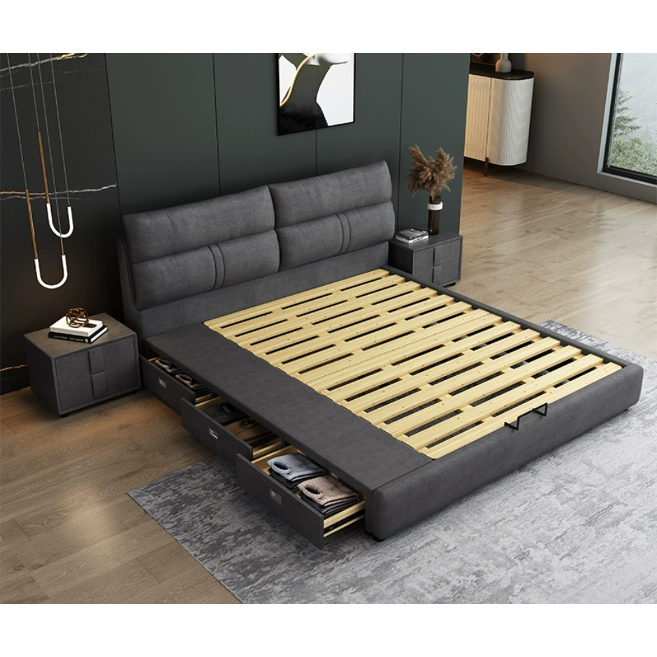 Giường Ngủ Hiện Đại Bọc Da Ultra-Microfiber: Tiện Nghi Với Ngăn Kéo Chứa Đồ Thông Minh