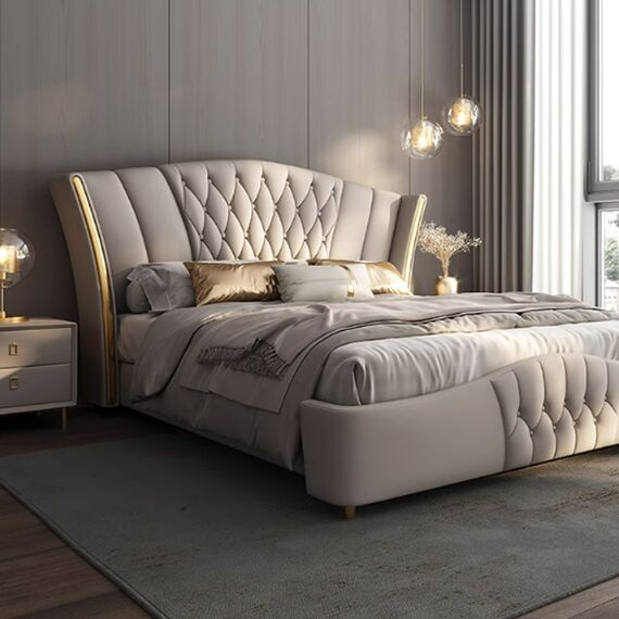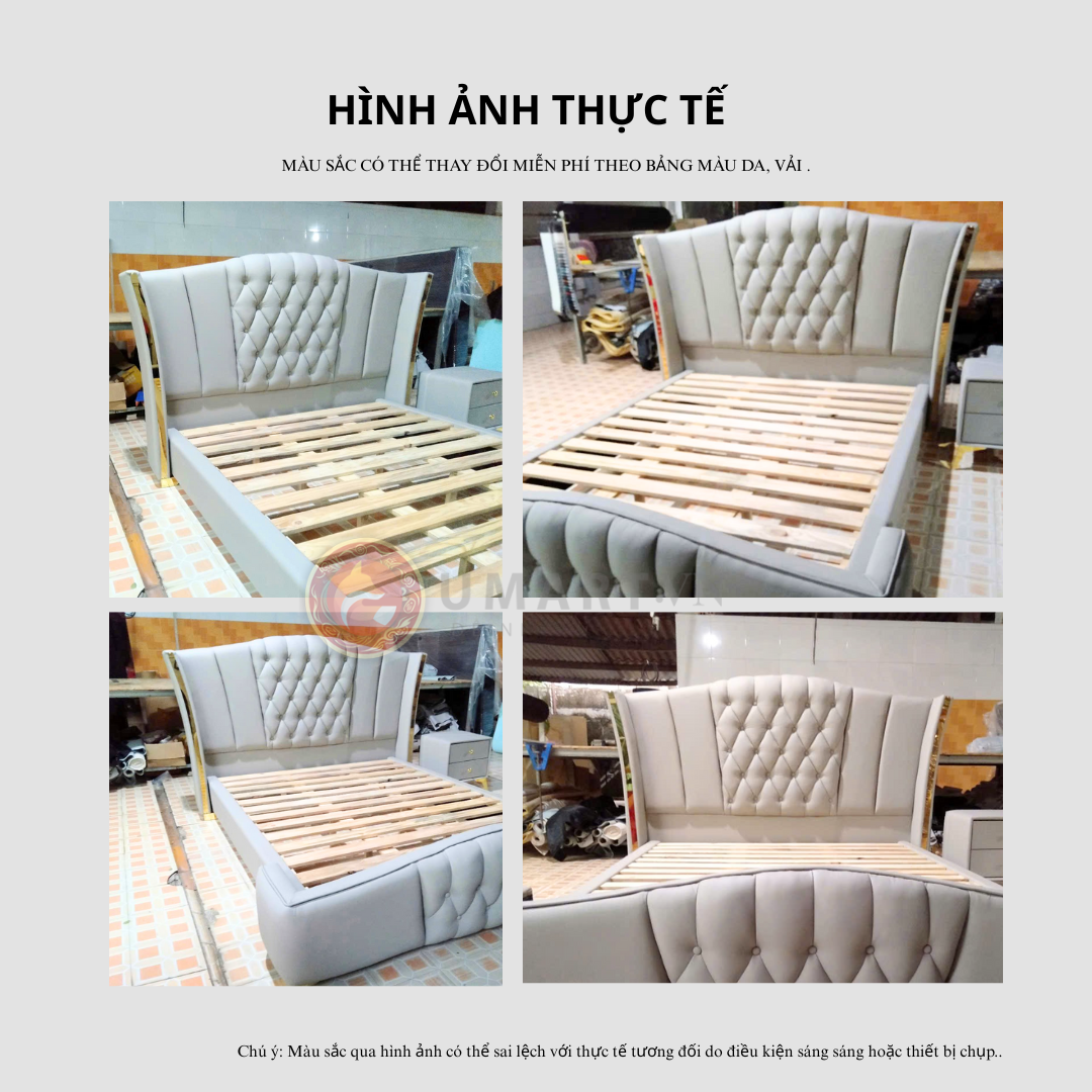 Phong cách Châu Âu đẳng cấp – Sang trọng, phù hợp mọi không gian. Khung gỗ tự nhiên dày – Bền chắc, không mối mọt. Da cao cấp kháng cháy – Bền đẹp, chống bám bẩn, lau sạch dễ dàng. Đầu giường lớn – Nổi bật, tinh tế, tạo sự bề thế. Giát giường siêu chắc – Chịu tải trọng 1 tấn, không ọp ẹp.