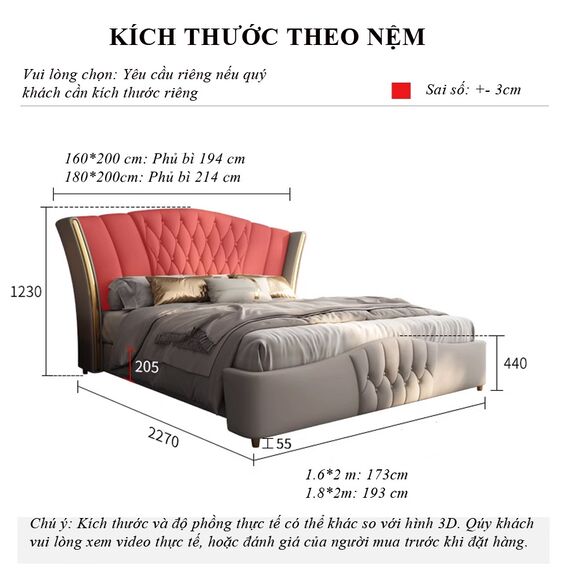 Kích thước đa dạng: 1m8x2m, 2m2x2m – Không gian rộng rãi, thoải mái.