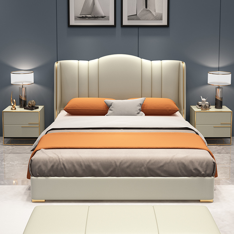 • Thiết kế đầu giường hình vỏ sò độc đáo: Đầu giường được tạo hình cong mềm mại như một chiếc vỏ sò, kết hợp với viền kim loại mạ vàng tinh tế, tạo nên một vẻ đẹp lôi cuốn và khác biệt.