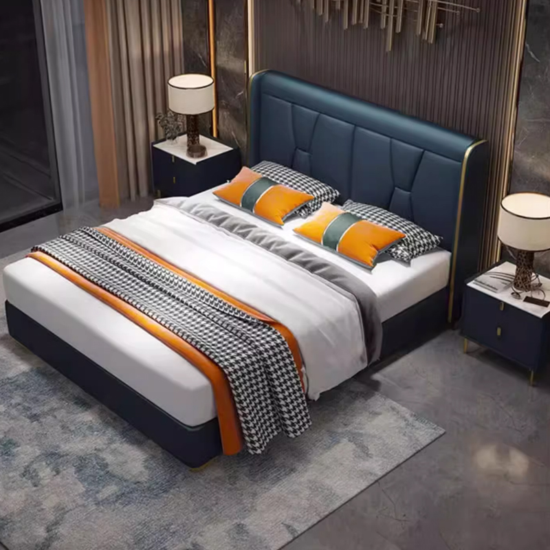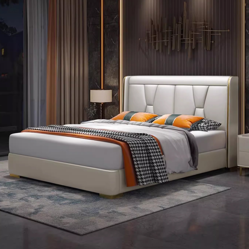 Giường Ngủ Bọc Da Cao Cấp GN-1010 (Viền Mạ Vàng Luxury)