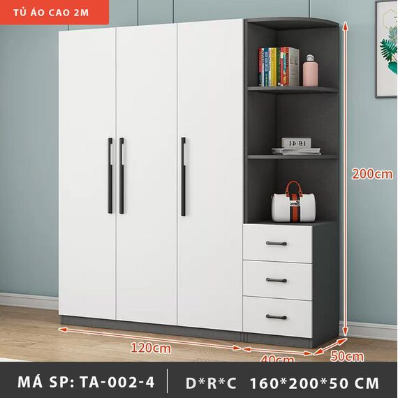 - Kích thước Dài*Rộng*Sâu: Từ 80cm/120cm/160cm/200cm x200 cmx 50 cm ( Chú ý: Giá bán thay đổi theo kích thước tủ)